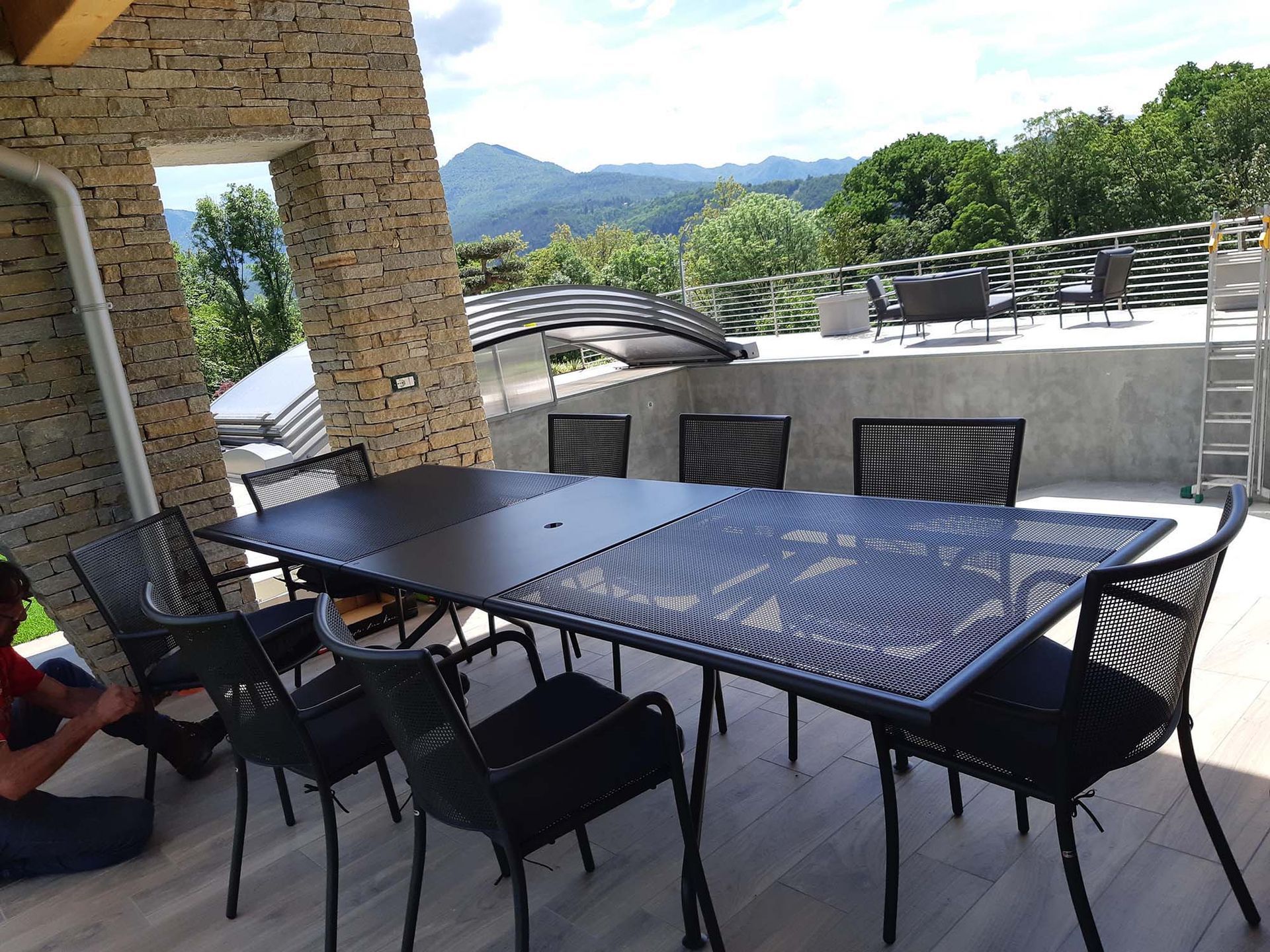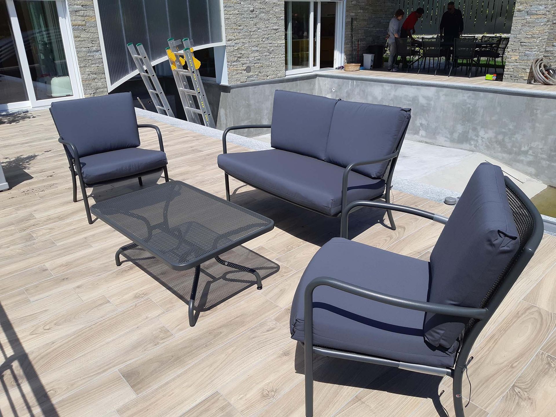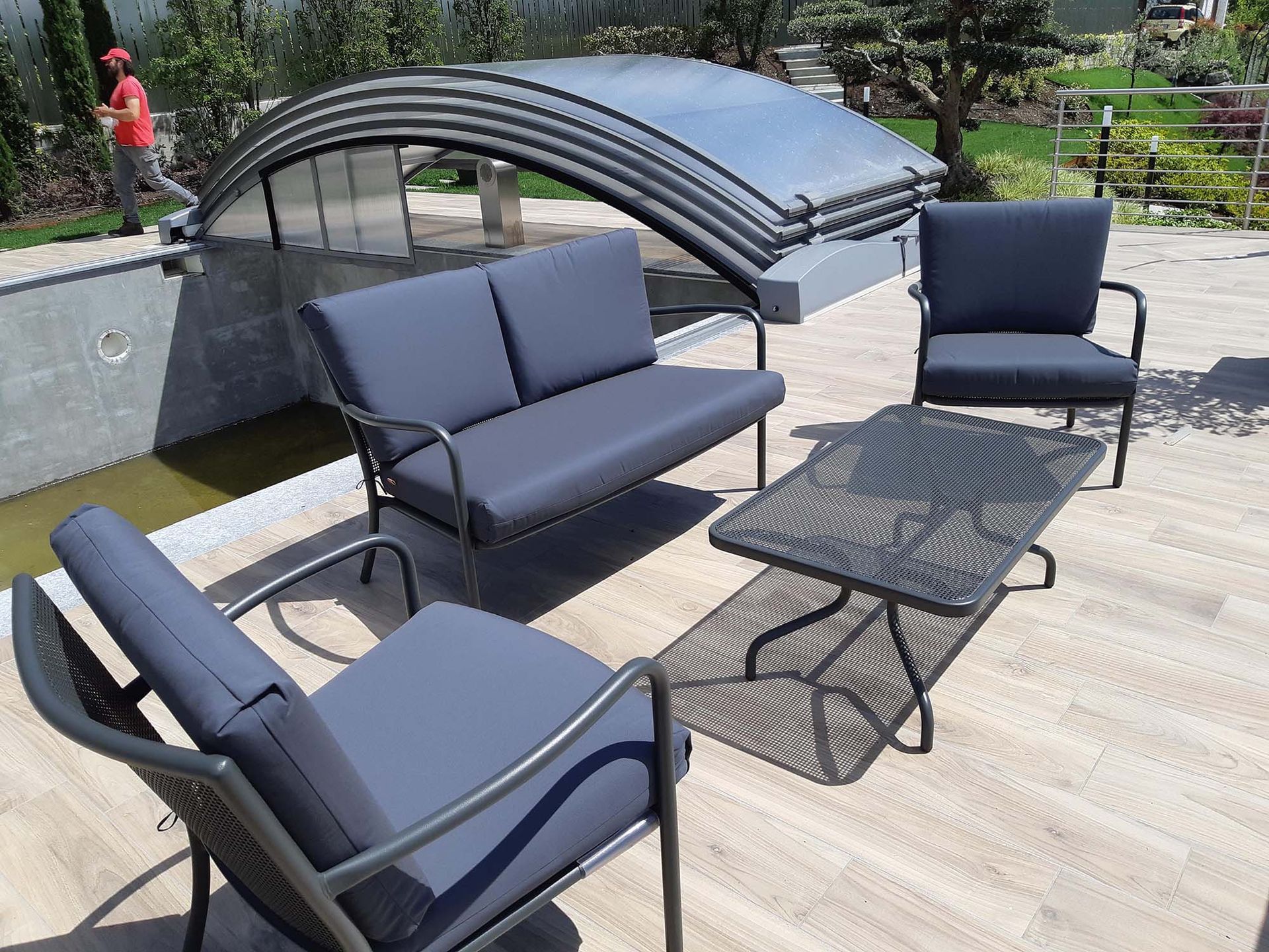 - una serie di poltrone e divani, in solo metallo o corredati da cuscini e schienali rimovibili.